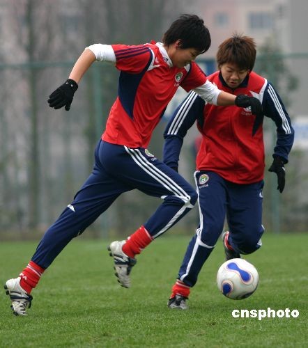 2月20日上午,中國(guó)女足的姑娘們?cè)谥鹘叹氁聋惿讕ьI(lǐng)下,來(lái)到重慶文理學(xué)院足球訓(xùn)練場(chǎng)進(jìn)行有針對(duì)性的賽前對(duì)抗訓(xùn)練,她們21日晚將迎戰(zhàn)東亞四強(qiáng)賽上實(shí)力最強(qiáng)勁的對(duì)手朝鮮隊(duì)。中新社發(fā) 陳仕川 攝