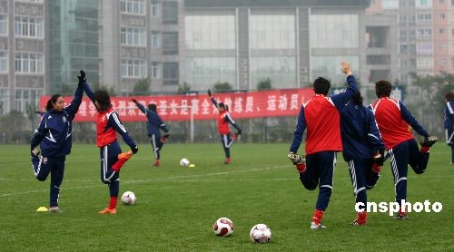 圖:中國(guó)女足訓(xùn)練重點(diǎn)演練防守戰(zhàn)術(shù)