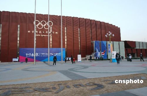 2月26日,“好運(yùn)北京”2008跆拳道國際邀請賽在北京科技大學(xué)開幕,本次比賽共有來自27個國家和地區(qū)的運(yùn)動隊(duì)報名參賽。圖為北京科技大學(xué)體育館,該場館將承擔(dān)奧運(yùn)會柔道、跆拳道和殘奧會輪椅籃球、輪椅橄欖球四個項(xiàng)目的比賽。中新社發(fā) 富田 攝