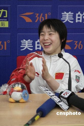 3月20日,在剛剛結(jié)束的2008中國(guó)跳水冠軍賽暨奧運(yùn)會(huì)選拔賽女子十米跳臺(tái)決賽中,來(lái)自天津的汪皓技?jí)喝悍家灶I(lǐng)先第二名將近30分的優(yōu)勢(shì)獲得冠軍。中新社發(fā) 張婭子 攝