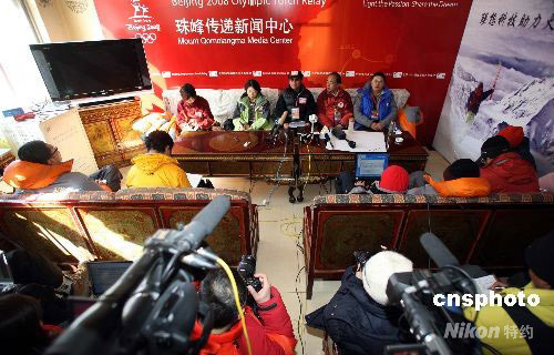 5月6日,在珠峰大本營(yíng)絨布新聞中心,中國(guó)登山隊(duì)新聞發(fā)言人張志堅(jiān)博士授權(quán)公布了2008北京奧運(yùn)火炬接力珠峰傳遞登山隊(duì)31名隊(duì)員名單和登山隊(duì)隊(duì)長(zhǎng)及教練名單。中新社發(fā) 盛佳鵬 攝