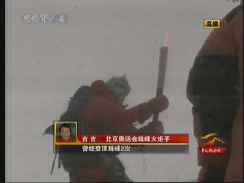 圖:火炬手吉吉成為登頂珠峰第一棒