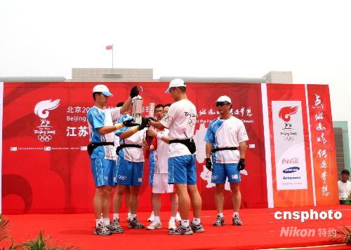 5月26日,北京奧組委圣火禮儀護衛(wèi)人員將圣火收入火種燈交由北京奧組委圣火使者,宣告泰州站火炬?zhèn)鬟f活動順利圓滿結束,下午將轉場至江蘇省第4站——揚州繼續(xù)傳遞。 中新社發(fā) 崔佳明 攝
