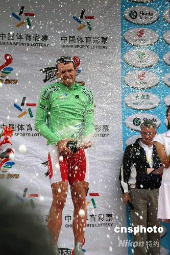 第七屆環(huán)青海湖國(guó)際公路自行車賽七月十四日舉行第四賽段比賽。在從青海湖鳥(niǎo)島至西海鎮(zhèn)的比賽中,丹麥隊(duì)選手亞歷克斯·拉斯穆森奪得第一名。中新社發(fā) 齊彬 攝