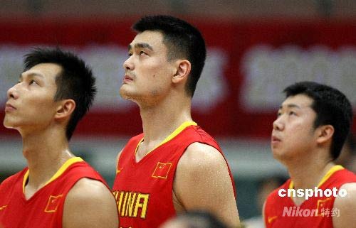 7月19日下午,中國男籃在杭州舉行的2008斯坦科維奇洲際杯籃球賽的比賽中以71比72負(fù)于北京奧運(yùn)會(huì)同組對手非洲冠軍安哥拉隊(duì)。效力于NBA火箭隊(duì)的姚明(中)、NBA新澤西網(wǎng)隊(duì)的中國球星易建聯(lián)(左)、從NBA回國的王治郅是中國男籃的“三座大山”,他們在北京奧運(yùn)會(huì)賽場上的發(fā)揮對中國隊(duì)的勝負(fù)舉足輕重。中新社發(fā) 任晨鳴 攝