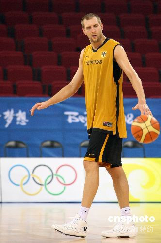 8月4日下午,參加北京奧運會的德國男籃在北京奧運會籃球比賽館--五棵松籃球館進行抵達北京后的首場訓練。效力于NBA達拉斯小牛隊的德國巨星諾維斯基在球場內開始他的“奧運夢想”之旅。德國男籃是中國男籃小組出線的勁敵,雙方都想將對手擊敗而進入八強。中新社發(fā) 任晨鳴 攝
