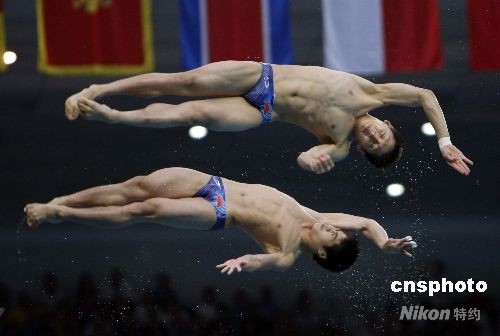 8月11日,中國選手林躍、火亮獲得北京奧運(yùn)會(huì)男子10米雙人跳臺(tái)跳水金牌。中新社發(fā) 杜洋 攝