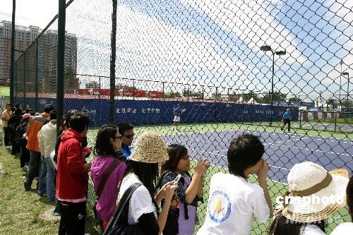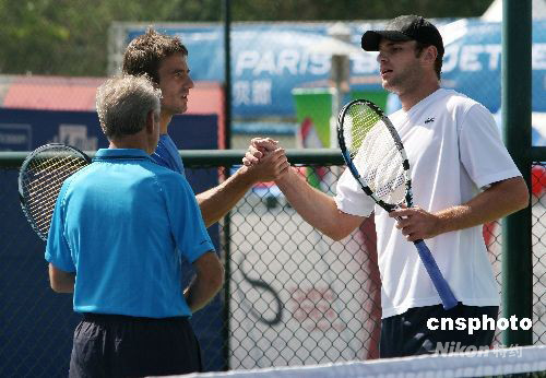 9月25日,中國(guó)網(wǎng)球公開(kāi)賽訓(xùn)練場(chǎng)上,西班牙球星羅布雷多和美國(guó)球星羅迪克同場(chǎng)練球,吸引了眾多球迷。中新社發(fā) 魯谷 攝