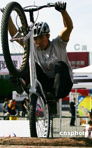 10月11日,2008特步CX全國(guó)極限精英賽總決賽在北京舉行,來(lái)自全國(guó)的幾十名極限高手將在北京一決高下。 中新社發(fā) 富田 攝