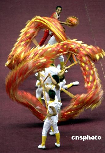 圖:全國農(nóng)運會舞龍比賽技驚四座