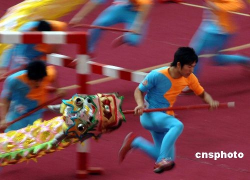 十月三十日,第六屆全國(guó)農(nóng)運(yùn)會(huì)舞龍舞獅比賽高潮迭起,給賽事舉辦地福建泉州石獅市觀眾帶來(lái)出神入化的美感。共有十三支來(lái)自天南地北的舞龍隊(duì),在“競(jìng)速舞龍”賽中使出渾身解數(shù)競(jìng)爭(zhēng)桂冠。中新社發(fā) 鄭祚聲 攝