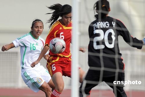 當?shù)貢r間11月9日,備戰(zhàn)女足世界青年錦標賽的中國青年女子足球隊在洛杉磯與墨西哥青年女足隊進行了一場熱身賽,結(jié)果兩隊踢成一比一。中新社發(fā) 張煒 攝