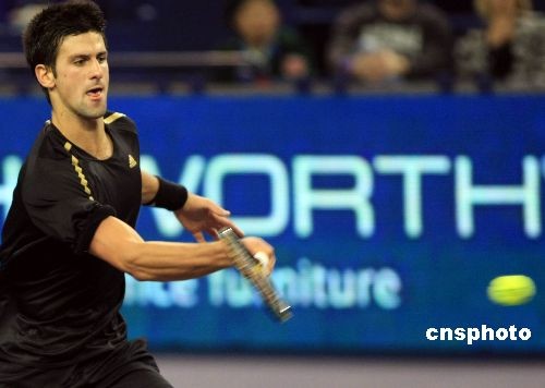 11月13日,在上海旗忠網(wǎng)球中心進行的上海大師杯單打金組最后一輪的比賽中,此前已經(jīng)兩戰(zhàn)皆北的法國“阿里”特松加在晉級無望的情況下勇于拼搏上演大逆轉(zhuǎn),以2比1戰(zhàn)勝世界排名第三的塞爾維亞選手德約科維奇,三盤比分是1-6/7-5/6-1,贏得榮譽之戰(zhàn)。中新社發(fā) 湯彥俊 攝