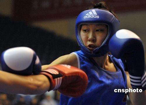 11月22日下午,2008世界女子拳擊錦標(biāo)賽在寧波體育中心雅戈爾體育館拉開戰(zhàn)幕,中國隊的李思源在與美國的比賽中,戰(zhàn)勝對手,取得第一場勝利。當(dāng)天共進行了26場預(yù)賽。中新社發(fā) 李巖宏 攝