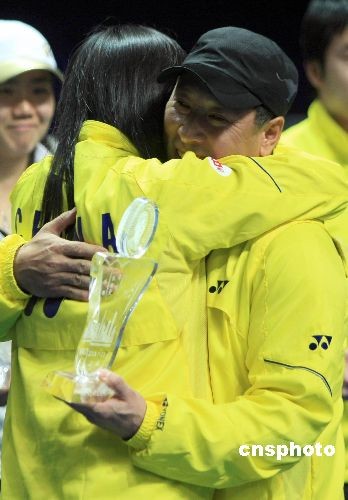 圖為雅典奧運、北京奧運女單冠軍張寧與恩師李永波深情相擁。