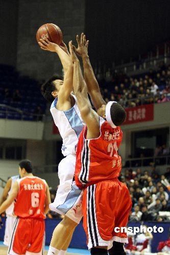11月28日晚又結束了一輪CBA聯(lián)賽,北京金隅上一場失利后,及時總結了經(jīng)驗教訓,本場比賽一開始打的有聲有色,投籃點多命中率也高,很快就領先了長春隊10多分,客隊并沒有慌張,暫停后在場上外援羅杰斯的強力發(fā)揮下不但將比分迫近,中場結束時反而領先了北京隊4分。下半場北京隊緊逼防守的同時,進攻有條不紊,內外結合,將局勢逐漸掌握在自己手里,最終以5分的優(yōu)勢取勝。中新社發(fā) 王韶驊 攝