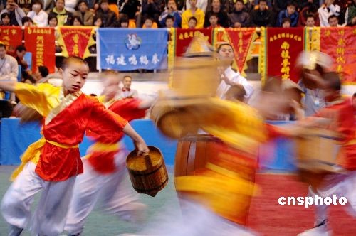 十二月十四日上午,“二00八閩臺南少林傳統(tǒng)武術(shù)交流大賽暨學(xué)術(shù)交流會”在福州市開幕。中新社發(fā) 鄭祚聲 攝