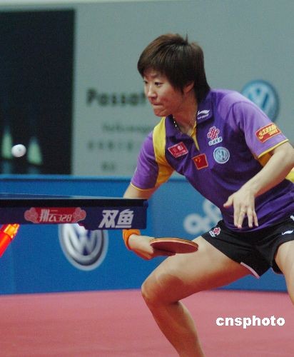 二零零八國(guó)際乒聯(lián)職業(yè)巡回賽總決賽十二月十四日晚在澳門落幕,中國(guó)選手郭焱四比二戰(zhàn)勝隊(duì)友郭躍,獲得女子單打冠軍。中新社發(fā) 畢永光 攝