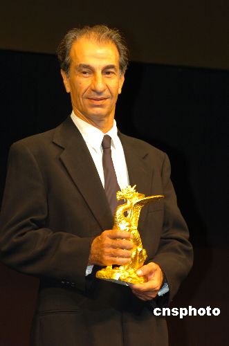 10月28日下午,第20屆東京國際電影節(jié)在東京澀谷文化村舉行頒獎典禮,以色列電影《樂隊來訪》獲得了最高獎項金麒麟大獎。圖為該片導演Eran Kolirin獲獎后手捧金麒麟獎杯發(fā)表感言。中新社發(fā) 滕劍峰 攝