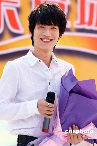 10月28日,超女厲娜和快男陳楚生在南寧參加中國—東盟博覽會(huì)為某汽車品牌的新車首發(fā)式作宣傳,厲娜和陳楚生為到場的觀眾各獻(xiàn)上三首歌曲,厲娜還臨時(shí)客串了一把車模。中新社發(fā) 駱文剛 攝