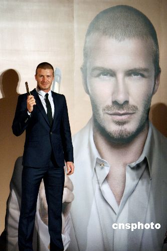 2007年11月24日,在北京嘉里中心,摩托羅拉發(fā)布MOTO RAZR V8黃金典藏版手機。貝克漢姆(David Beckham)作為其全球品牌形象大使來華展示他的最新時尚裝備。中新社發(fā) 袁方 攝