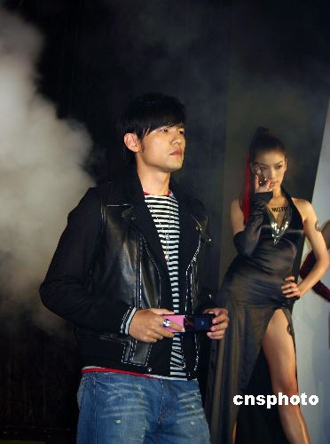 臺灣藝人周杰倫在臺北亮相,為某品牌的手機代言。中新社發(fā) 陳國華 攝