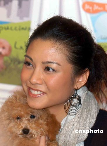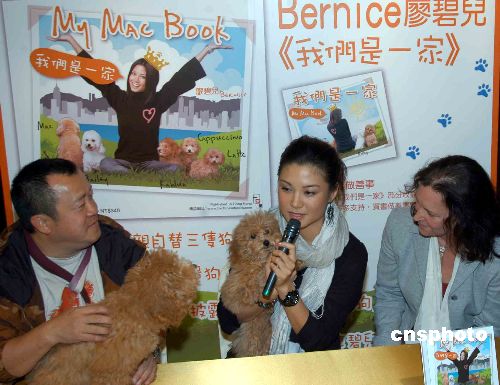 12月17日,香港藝人廖碧兒在記者會上推出首本寵物圖文集《我們是一家》,記載她和這“一家五狗”樂也融融的生潔點滴,著名影人曾志偉出席記者會以示支持。中新社發(fā) 譚達明 攝
