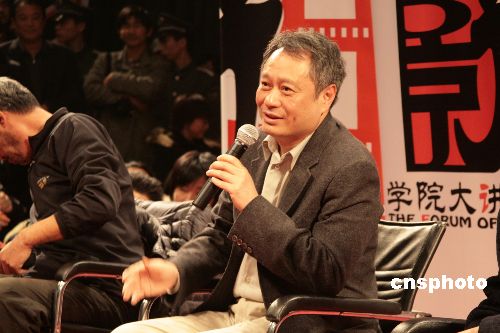 正在熱映的大片《色·戒》的導(dǎo)演李安12月25日做客北京電影學(xué)院,與同學(xué)們進(jìn)行學(xué)術(shù)交流活動(dòng)。同時(shí)出席的還有著名導(dǎo)演田壯壯及電影學(xué)院院長(zhǎng)張會(huì)軍。李安還獲得了“北京電影學(xué)院客座教授”榮譽(yù)稱號(hào)。中新社發(fā) 墮天 攝