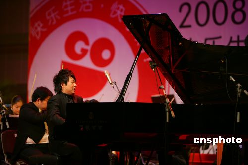 12月28日晚,青年鋼琴演奏家郎朗在長沙舉行“快樂生活快樂購·郎朗乾坤2008新年感恩鋼琴音樂會(huì)”。上半場郎朗和湖南省交響樂團(tuán)合作表演了《黃河》,下半場獨(dú)奏時(shí)間里,郎朗演奏了莫扎特降B大調(diào)鋼琴奏鳴曲等世界名曲。中新社發(fā) 鄧霞 攝
