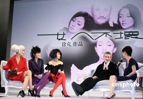 1月8日下午,由徐克指導(dǎo)的最新影片《女人不壞》在北京召開記者會,徐導(dǎo)率三位女主角周迅、桂綸鎂、張雨琦一同出席。三位女主角分別以極為“出位”的造型亮相,徐克稱不僅是從外形上對她們進(jìn)行“改造”,還要讓這三位從沒演過喜劇角色的演員出演喜劇,挖掘出她們不為人知的一面。據(jù)悉,周迅在戲中要演包括孕婦、醫(yī)生、病人、記者、農(nóng)婦等十二個角色,桂綸鎂是一個相當(dāng)野蠻但是介乎于真實和虛幻里的人物,張雨琦則是綽號“無敵”的以智慧掛帥的女性。中新社發(fā) 一可 攝