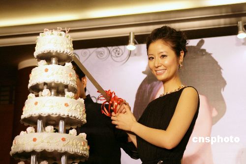 1月22日,華誼兄弟傳媒集團(tuán)為旗下藝人林心如舉辦名為“林心如十年有成記者會(huì)”。林心如身著有臺(tái)灣著名設(shè)計(jì)師陳季敏特別為其定制的禮服,世界知名珠寶“BVLGARI”寶格麗也特別由國(guó)外調(diào)來了精致的彩色珠寶烘托林心如的高貴氣質(zhì)。華誼兄弟總裁王中軍作為特別嘉賓親臨現(xiàn)場(chǎng),他特別定制了一個(gè)十層的蛋糕送來給心如,寓意心如十年成就,而且還會(huì)層層高。中新社發(fā) 一可 攝