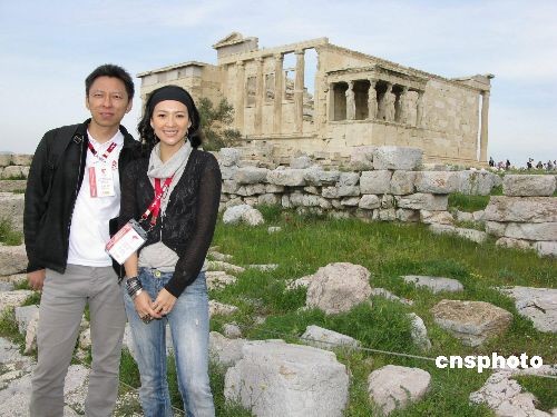 當?shù)貢r間3月22日下午,搜狐公司董事局主席兼首席執(zhí)行官張朝陽、搜狐奧運官網(wǎng)特約記者章子怡與奧運官方網(wǎng)站圣火報道團一行前往帕納辛納克斯泛雅典體育場、衛(wèi)城等雅典遺址,沿著奧運圣火傳遞的足跡,率先為中國億萬網(wǎng)民傳遞當?shù)貍鋺?zhàn)奧運圣火傳遞的盛況。圖為張朝陽(左)與章子怡在雅典衛(wèi)城采風。中新社發(fā) 沈晨 攝