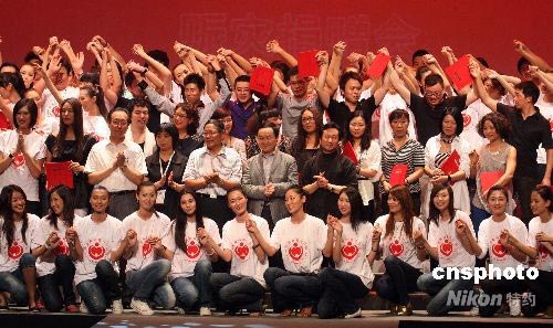 6月19日晚,由中國(guó)服裝設(shè)計(jì)師協(xié)會(huì)在北京舉辦的“人文奧運(yùn)”時(shí)尚成衣發(fā)布會(huì)暨“愛心·時(shí)尚”賑災(zāi)捐贈(zèng)會(huì)上,“中國(guó)模特愛心行動(dòng)”再掀一個(gè)高潮,中國(guó)內(nèi)地名模代表們通過(guò)現(xiàn)場(chǎng)宣誓,吹響“中國(guó)模特愛心行動(dòng)”全面啟動(dòng)的號(hào)角,“中國(guó)模特愛心行動(dòng)”將在今后定期或不定期的舉辦各種形式的宣傳活動(dòng)籌集善款,并全部用于資助災(zāi)區(qū)及其它貧困地區(qū)的兒童教育事業(yè)。中國(guó)扶貧基金會(huì)收到全額款項(xiàng)后,將根據(jù)中國(guó)服裝設(shè)計(jì)師協(xié)會(huì)職業(yè)時(shí)裝模特委員會(huì)的意愿,點(diǎn)對(duì)點(diǎn)落實(shí)為災(zāi)區(qū)小學(xué)建立圖書室、電腦房等。圖為中國(guó)時(shí)裝設(shè)計(jì)師、模特以及中國(guó)服裝業(yè)內(nèi)人士一起參加愛心行動(dòng)啟動(dòng)。中新社發(fā) 錢興強(qiáng) 攝