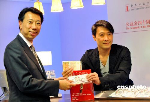 八月二十七日,為慶祝香港公益金成立四十周年,公益金在香港中環(huán)區(qū)一間渣打銀行分行舉行籌款項(xiàng)目“珍藏版迷你八達(dá)通卡”開(kāi)展儀式,并公布相關(guān)事宜。歌星黎明更充當(dāng)“售貨員”,并以公益金董事身份出席宣傳,呼吁市民支持活動(dòng)。中新社發(fā) 鄧慶樂(lè) 攝