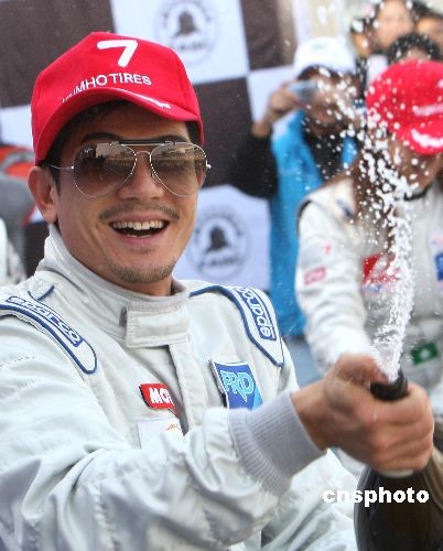 圖為郭富城獲得亞軍后噴灑香檳。