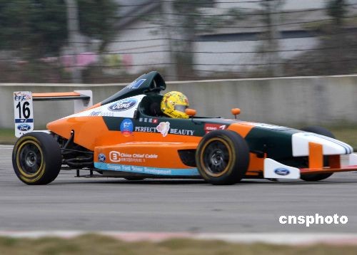 全國汽車場地錦標(biāo)賽第五站的比賽11月27日在成都國際賽車場舉行,在福特康巴斯方程式錦標(biāo)賽國際組的比賽中,香港天王巨星郭富城獲得亞軍。中新社發(fā) 趙振清 攝