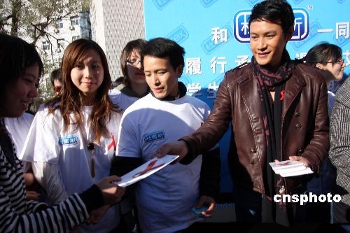 11月27日,知名藝人陸毅帶著一份防艾、抗艾的決心走進(jìn)北京中國(guó)人民大學(xué),為“大學(xué)生防艾志愿者聯(lián)盟”的成立助陣。2008年12月1日將迎來(lái)第二十一個(gè)“世界艾滋病日”。中新社發(fā) 王利 攝