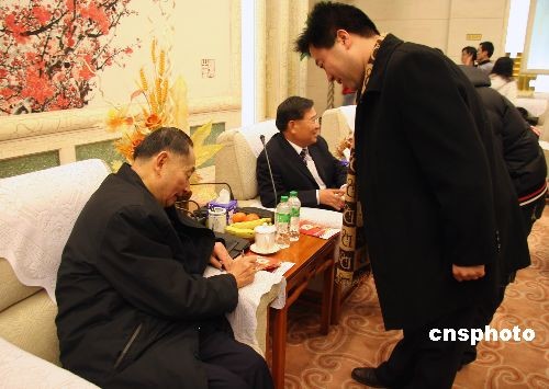 12月14日,梅蘭芳之子梅葆玖先生攜葉少蘭、李維康、孟廣祿、李宏圖等眾多京劇名家齊聚河北石家莊,參加京劇名家名段演唱會(huì)。中新社發(fā) 翟羽佳 攝