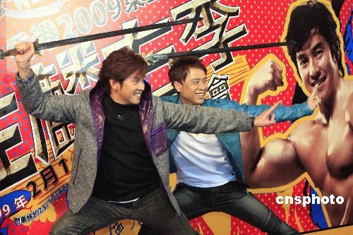 “香港2009東亞運動會左麟右李演唱會”將于明年二月一日至七日舉行。十二月十九日,藝人譚詠麟、李克勤在記者會上為演唱會造勢宣傳。中新社發(fā) 張勤 攝
