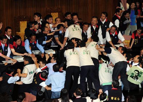 中新網(wǎng)7月11日電 綜合消息,臺灣“立法院”臨時會8日審議ECFA(兩岸經(jīng)濟合作框架協(xié)議),由于民進黨暴力阻撓表決,現(xiàn)場爆發(fā)肢體沖突,國民黨“立委”吳育升被砸傷眼角,民進黨“立委”郭玟成攀爬主席臺時摔落。據(jù)臺灣《聯(lián)合報》報道,民進黨“立院”黨團總召柯建銘、新任干事長管碧玲,昨到高雄市立民生醫(yī)院探視受傷“立委”郭玟成,院方表示,郭有三根肋骨骨折。