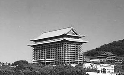 上個(gè)世紀(jì)50年代,臺(tái)北還沒有一家五星級飯店,蔣介石感到接待外賓尤其是外國政要很不方便,于是就想蓋一座“國賓館”。那么,飯店蓋在哪里好呢?宋美齡認(rèn)為位于基隆河濱、圓山山腰的臺(tái)灣飯店就很好。因?yàn)閭髡f這是塊風(fēng)水寶地,當(dāng)年日本人就看中這里是所謂的“龍尾穴”,建起了神社。臺(tái)灣光復(fù)后,在神社的廢墟上蓋起了臺(tái)灣飯店,由本地的旅行社經(jīng)營。雖然臺(tái)灣飯店只有36間客房、1間餐廳,建筑老舊,設(shè)備簡陋,但環(huán)境清幽,視野開闊,宋美齡很喜歡在這里接待外賓。地址選好了,那么選擇什么建筑式樣呢?幾經(jīng)考慮,蔣介石最后選擇了中國宮殿式房舍和庭院,意圖憑借其莊重宏偉的外觀、典雅精致的陳設(shè),向外賓宣揚(yáng)中國的傳統(tǒng)文化。臺(tái)灣著名的建筑設(shè)計(jì)師楊卓成先生為此繪制了12張風(fēng)格迥異的設(shè)計(jì)圖,蔣介石選了其中一張?梢哉f,圓山飯店從它建成的第一天起,就注定要成為人們關(guān)注的焦點(diǎn)。
