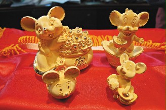 據(jù)臺灣《聯(lián)合報(bào)》報(bào)道,當(dāng)?shù)匾晃唤痫棙I(yè)者表示,明年農(nóng)歷傳統(tǒng)12生肖又重新由鼠年開始,金飾又深獲島內(nèi)民眾喜愛,因此今年金飾設(shè)計(jì)走俏皮及喜氣風(fēng)格,將不甚討好的老鼠變成金光閃閃、既生動(dòng)又可愛的卡通版造型,主要有卡通鼠、家鼠、錢鼠及袋鼠等造型,花樣多變。