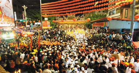 昨天上午9時(shí)起,全臺各地信眾不斷涌入大甲鎮(zhèn),將鎮(zhèn)瀾宮周邊街道擠得水泄不通,愈晚愈熱鬧。大甲警方出動(dòng)警、民力三百三十人,自下午3時(shí)交通管制;縣文化局規(guī)劃大甲媽祖觀光文化節(jié),下午6時(shí)起安排街頭表演,另獅陣、虎陣、藝閣、神偶、陣頭及神轎不斷聚集鎮(zhèn)瀾宮,到處人頭攢動(dòng)。