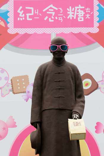 中新網(wǎng)4月10日電 據(jù)“中央社”報(bào)道,臺(tái)灣師范大學(xué)“糖果屋”裝置藝術(shù)展演活動(dòng)10日在臺(tái)師大校園舉行記者會(huì),有人把矗立在校園內(nèi)的蔣介石銅像載上大眼鏡變成介紹美食的“紀(jì)念糖糖主”,但卻引來一位老伯伯表達(dá)不同看法,認(rèn)為這樣“不尊重的蔣公”。