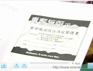 “我拒絕婚前性行為!”一起宣示拒絕婚前性行為,還簽下這張宣誓卡,這是校方送給應屆畢業(yè)生的畢業(yè)禮物,大家煞有其事的發(fā)表自己簽署這張卡片的理由。