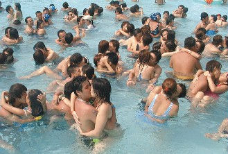 中新網(wǎng)7月30日電 臺(tái)北縣八里鄉(xiāng)八仙水上樂(lè)園4年前舉辦“愛(ài)的啵啵”七夕情人節(jié)活動(dòng),吸引百余對(duì)情侶在水中忘情擁吻。今年8月7日“七夕”要挑戰(zhàn)更高難度,舉辦“水底接吻競(jìng)賽”,第一名可獲得水中數(shù)碼相機(jī)1臺(tái)。