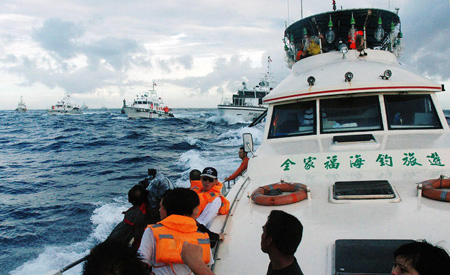 馬英九當(dāng)局的強硬態(tài)度,讓保釣人士格外興奮。黃錫麟等人再次出海保釣,也沒有遭遇任何阻攔。臺灣保釣行動聯(lián)盟12名成員及30名隨行記者,登上“全家!碧柡a灤,前往釣魚島宣示“主權(quán)”。一路上還有臺灣“海巡署”的軍艦保護。
