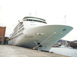 據(jù)臺灣《中國時報》報道,屬于歐洲摩納哥船東的“銀影號”以往多經(jīng)營美國、加拿大、阿拉斯加等航線,今年臺灣旅行社第一次引進(jìn),從上海出發(fā),昨日上午六時從日本那霸載來三百多位歐美有錢有閑的銀發(fā)族旅客,晚間十一時離基隆港航向下一站香港旅游。銀影號同款型的姐妹船“銀葉號”在下月十八日也將首航基隆港。