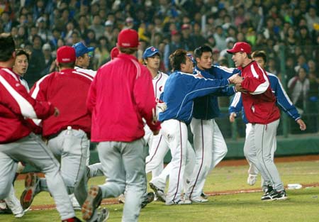 據(jù)臺(tái)灣媒體報(bào)道,這場(chǎng)在臺(tái)中舉行的大戰(zhàn)中,也出現(xiàn)比賽之外的不必要插曲。中國(guó)臺(tái)北隊(duì)球員力阻加拿大隊(duì)追平分,情緒自然激昂,卻沒想到球員額外的情緒發(fā)泄惹惱了加拿大球員,造成雙方球員跑入場(chǎng)中推擠理論,連球迷也紛紛丟擲雜物進(jìn)場(chǎng),爆發(fā)八搶三奧運(yùn)棒球資格賽開賽以來最大沖突。