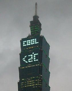 據(jù)臺(tái)灣中廣新聞報(bào)道,為了喚起民眾對(duì)于氣候暖化問(wèn)題的重視,臺(tái)灣“環(huán)境質(zhì)量文教基金會(huì)”與臺(tái)北101大樓,特別于世界地球日的前夕,舉辦“臺(tái)灣氣候密碼”活動(dòng),自4月21日起連續(xù)7天晚間在101大樓頂端點(diǎn)亮“<2℃”與“COOL”的字樣。